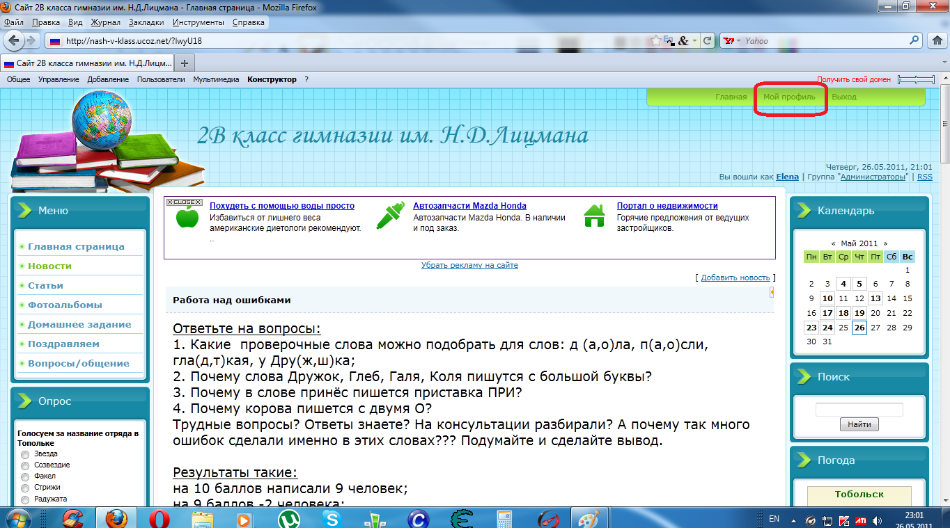 Когда зайдёте под личным именем или ником, на сайте посмотрите на правый верхний угол.Там меню Мой профиль, я его выделила красным прямоугольником, нажмите на эту опцию.